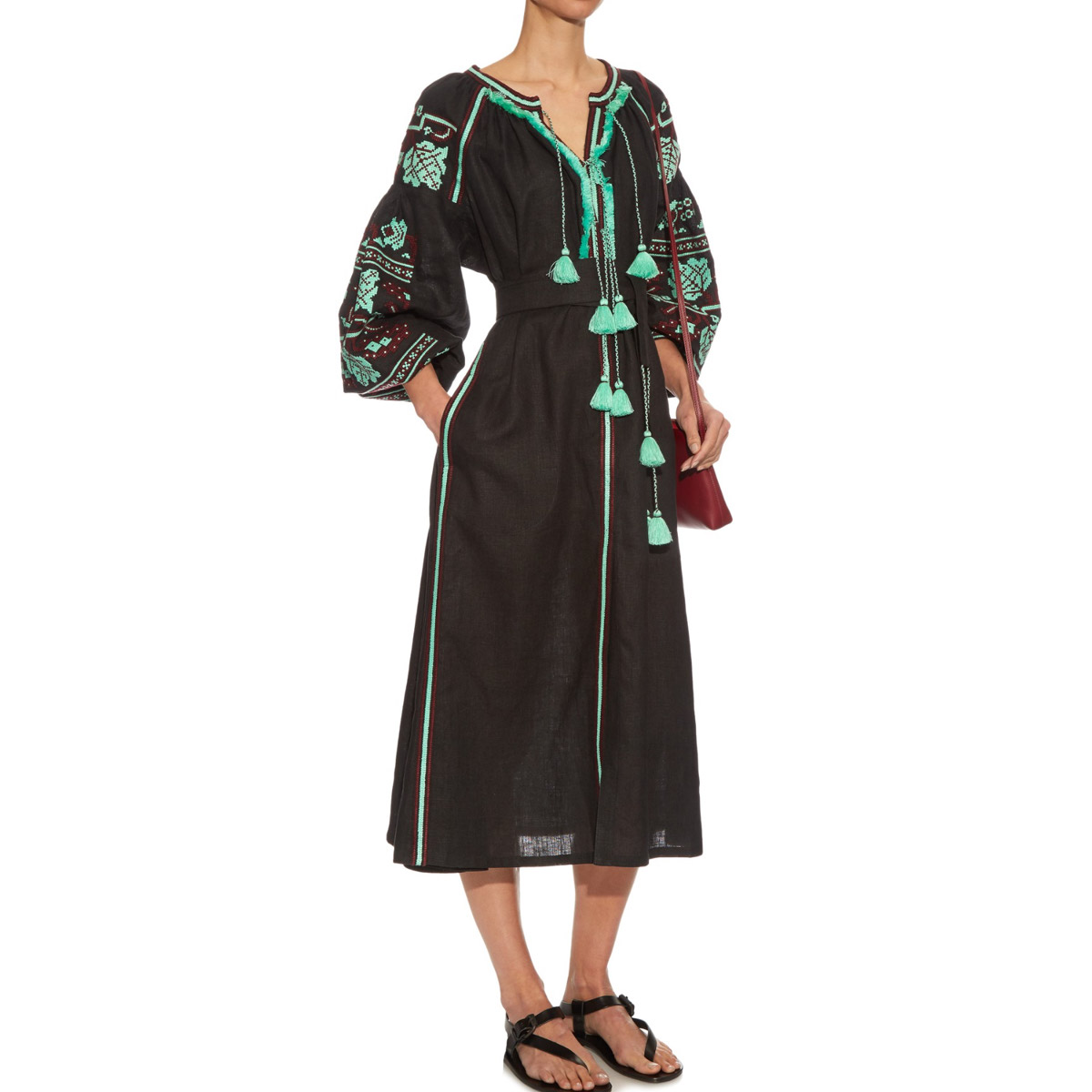 Vita Kin's black linen maxi dress gives a darker take on the boho vibe. Imagine yours worn with chandelier earrings and a simple gold clutch for a really knockout evening look.
