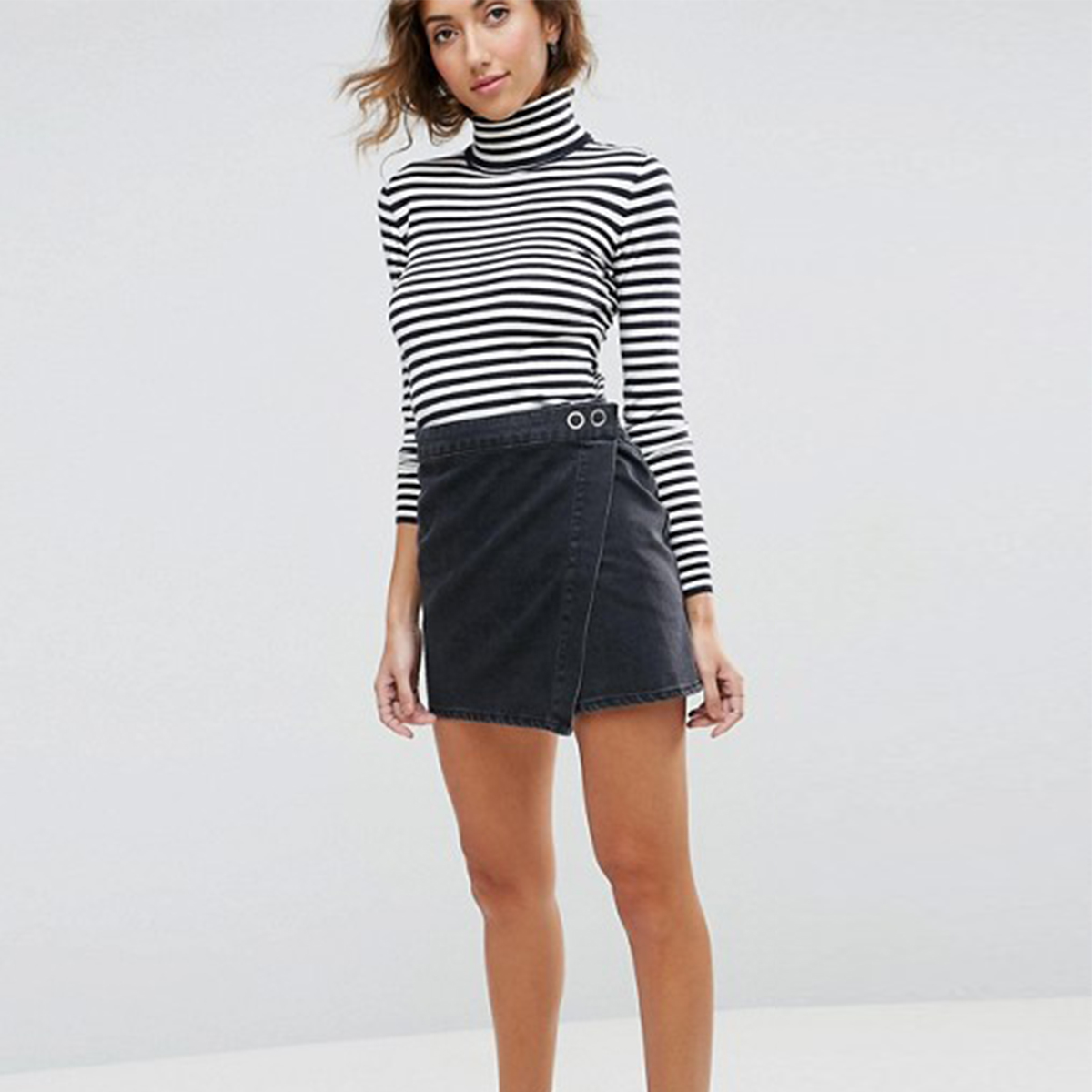 We love this dark denim mini. Dress it up with a blazer, or pair it with a simple breton tee for a more relaxed vibe.