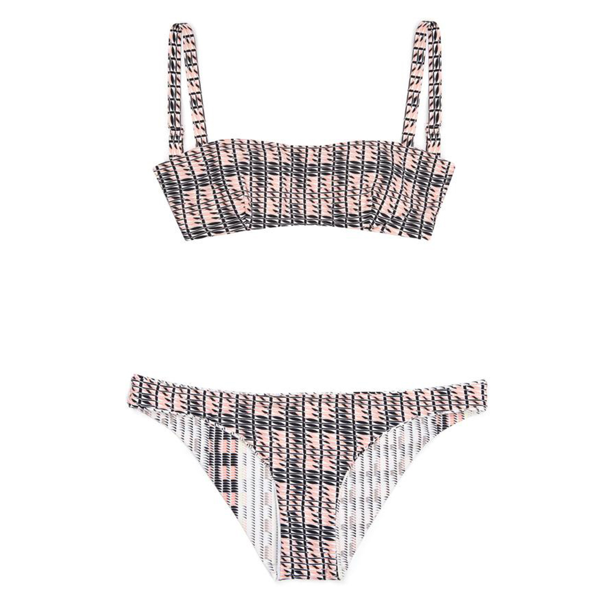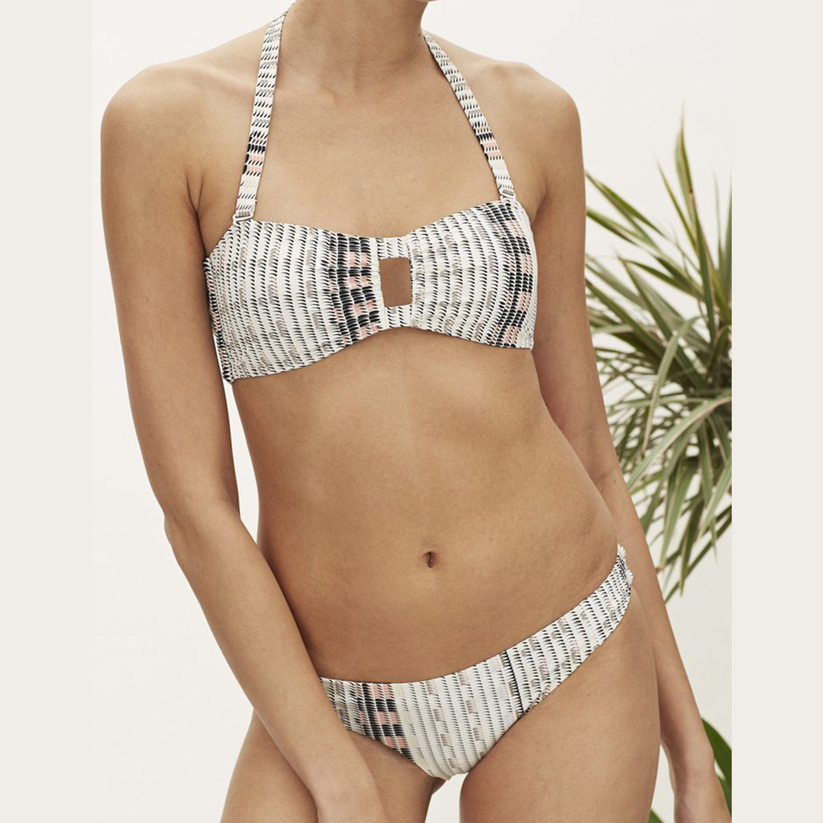 Mix and match different tops in this pared back yet interesting graphic print. Go for a simple bandeau, or give yourself a bit more lift in a halter style.