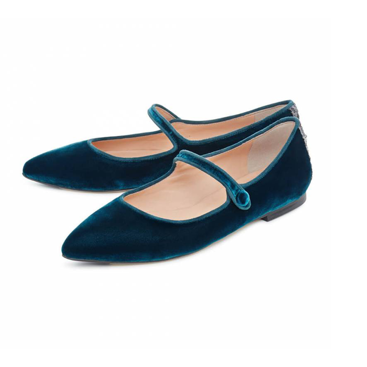 This Italian shoe brand specializes in velvet flats. We love this petrol blue pair. Wear them with slightly cropped jeans.