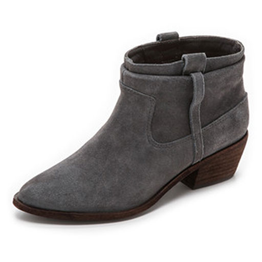 These Joie suede booties make for a great, everyday runaround style. Coming in grey, taupe or black, their small block heel, rounded toe and slightly slouchy (and flattering) ankle detailing make these booties the perfect pairing for jeans or a dress.