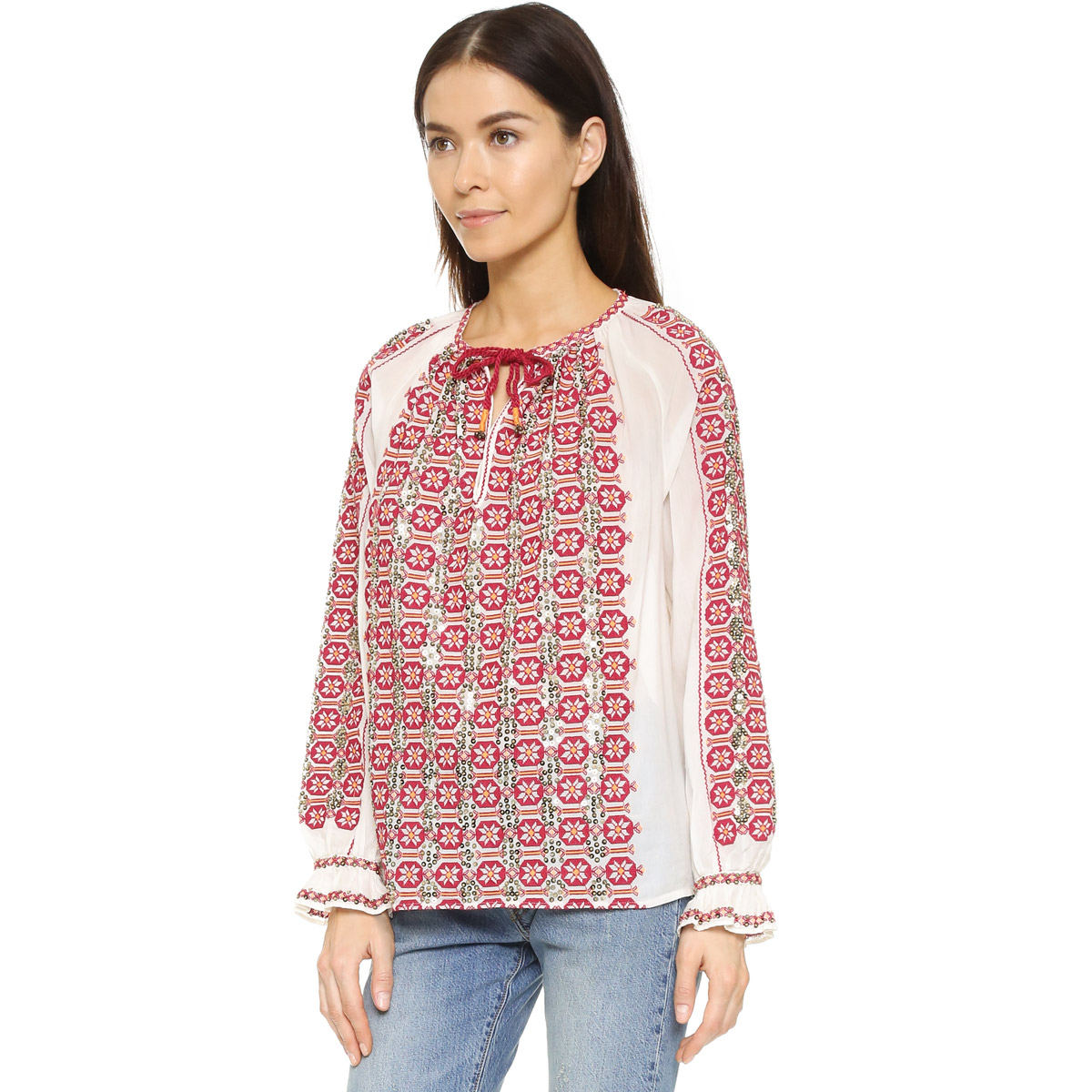 We love this voile blouse with its red embroidery and beading. Imagine it worn with white denim or a pair of faded cut-offs: check, two of your staple, summer outfits sorted.