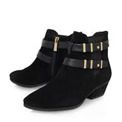 Turn the smart dial up a notch with these suede ankle boots and their buckle detailing. Good for wearing with simple black trousers or paired with tights and a dress, they have an easy heel and are sleek with a twist.