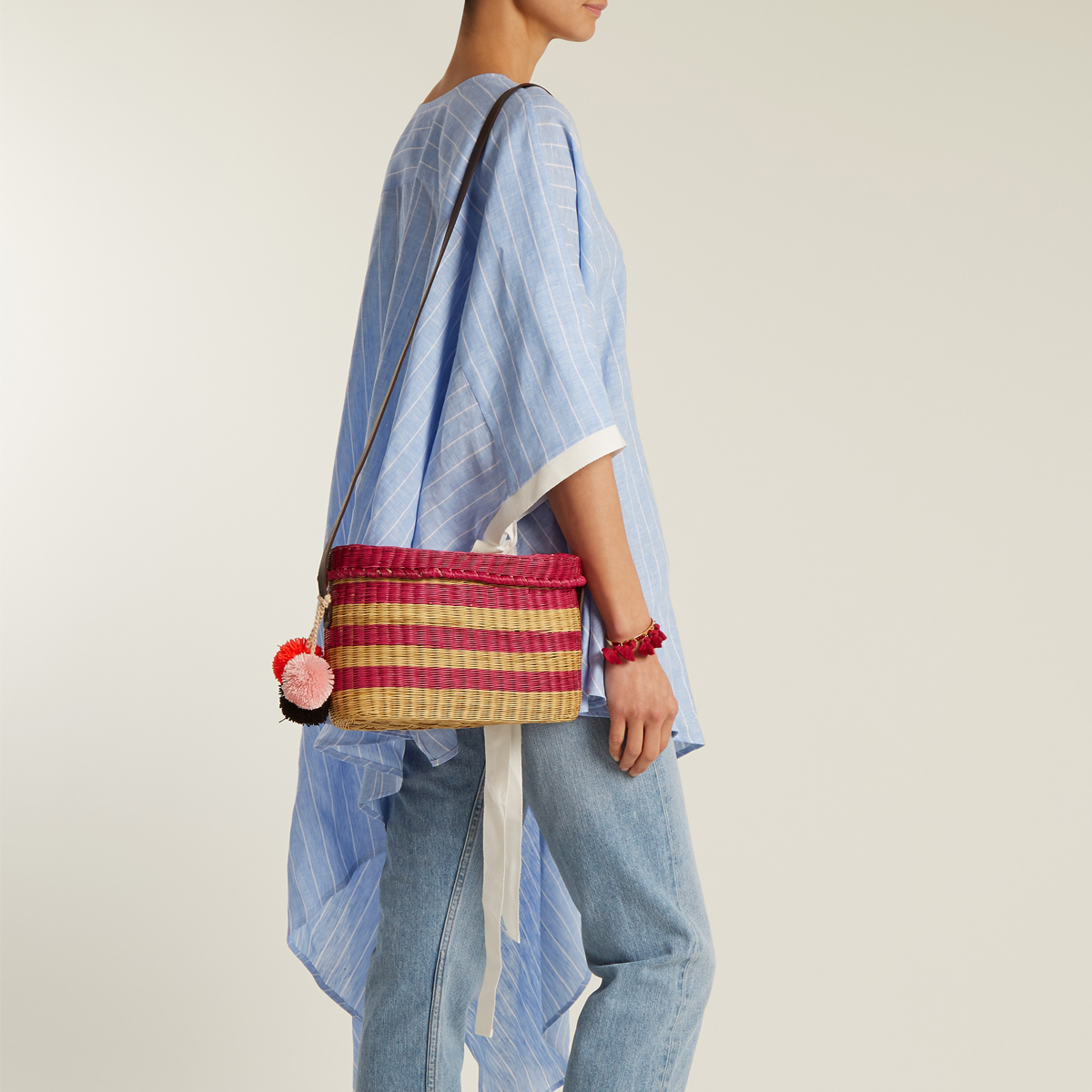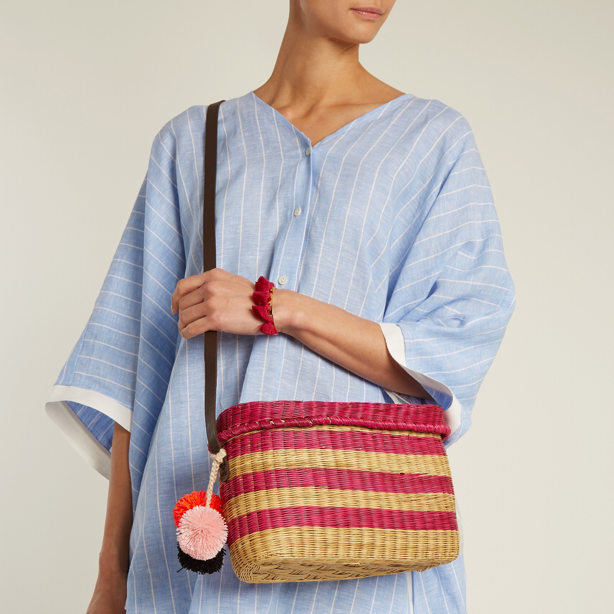 This boxy basket bag with stripes and shoulder strap ticks so many of this season’s trend boxes. Wear yours with easy daytime dresses.