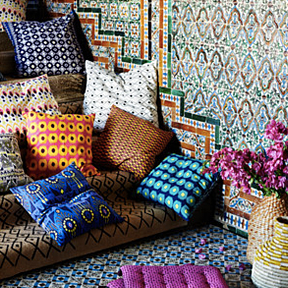 Mix and match colours as well as patterns with these Ikea cushions. Layer them up on printed sofas for the full effect.