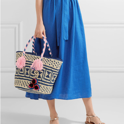 This beautiful basket takes three days to weave and packs quite a punch. Wear yours beyond the beach and pair it with denim and white for a great weekend look.