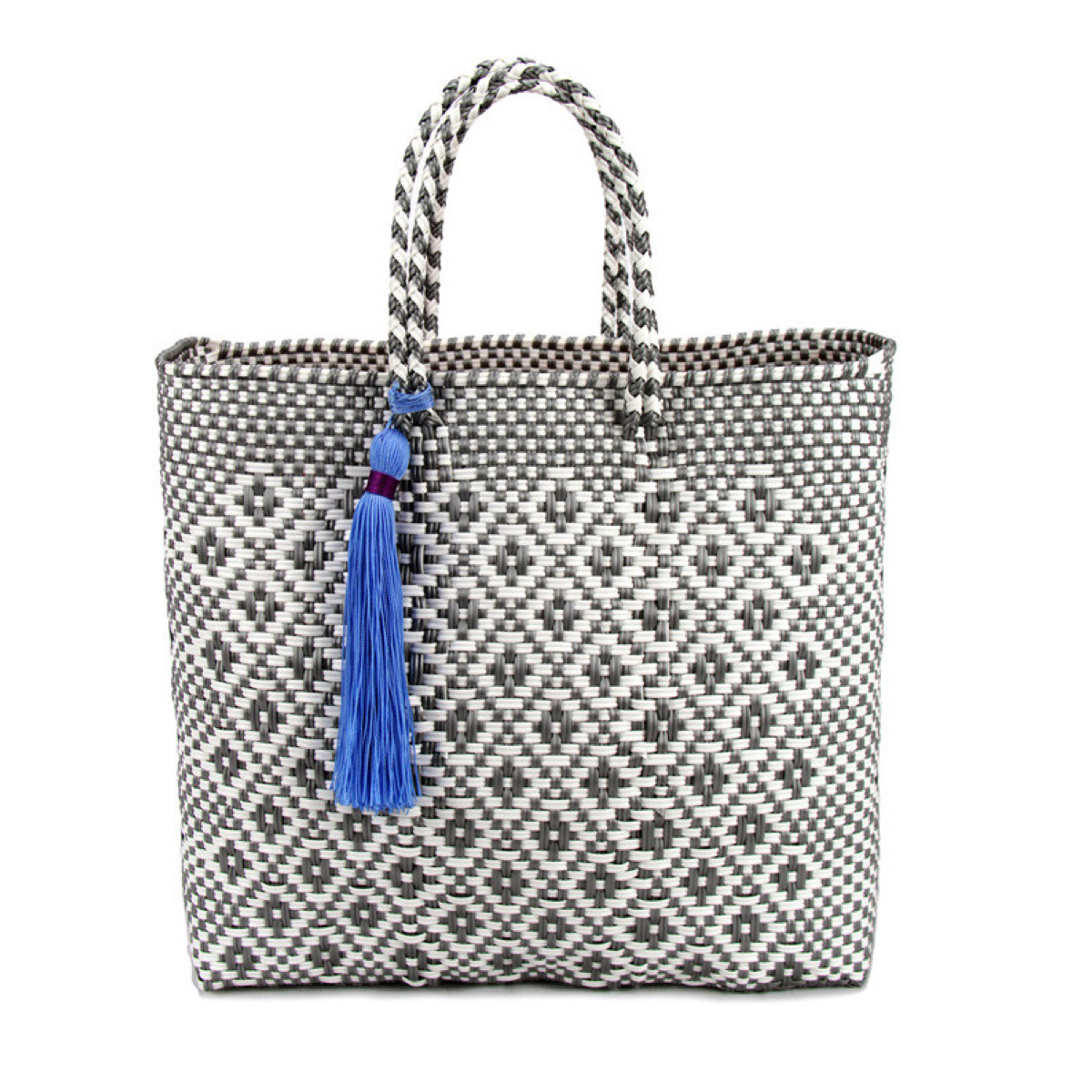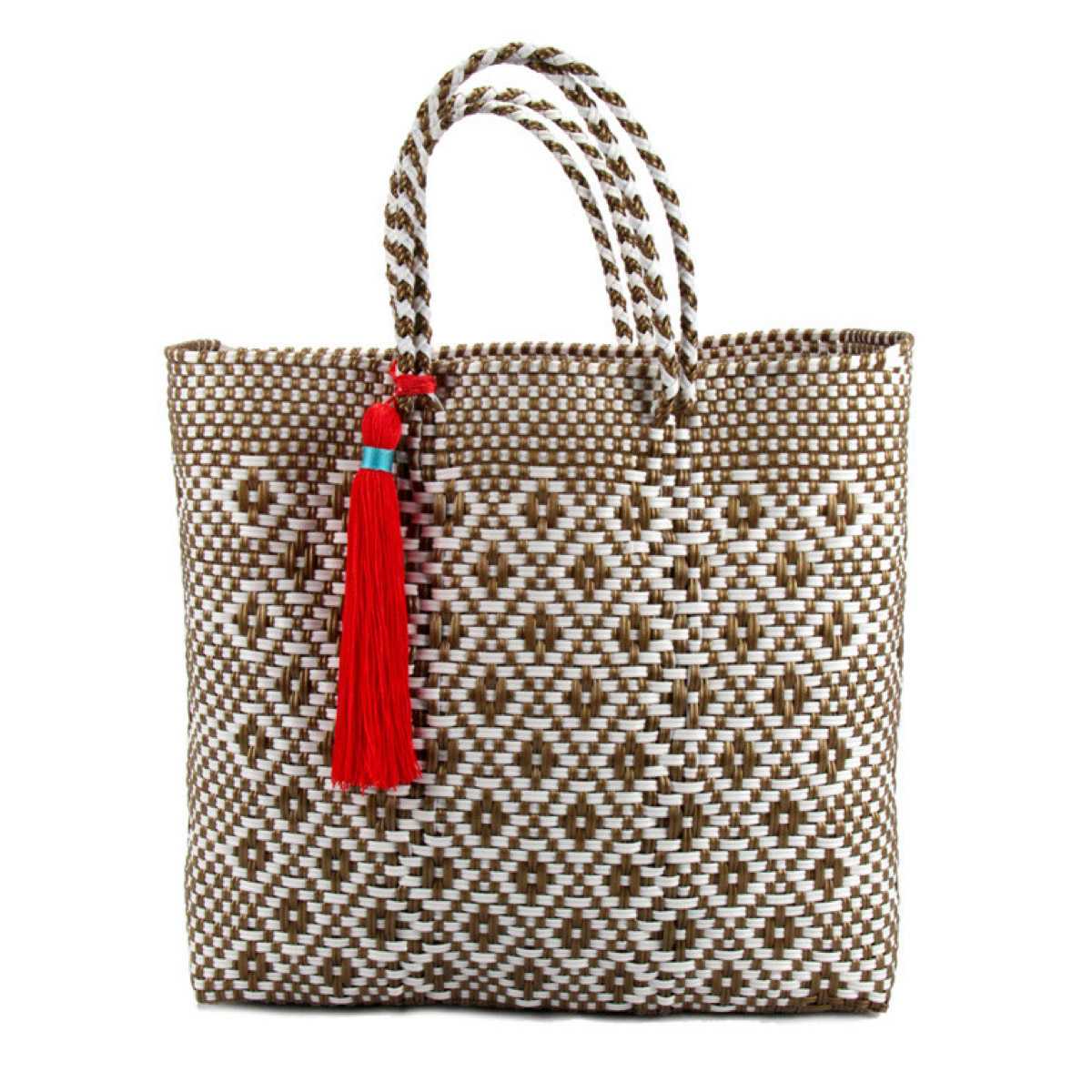 Handwoven in coloured plastic, this tote is a fabulous city-to-beach bag. It's sturdy, waterproof, washable and chic, making it a great everyday carryall.