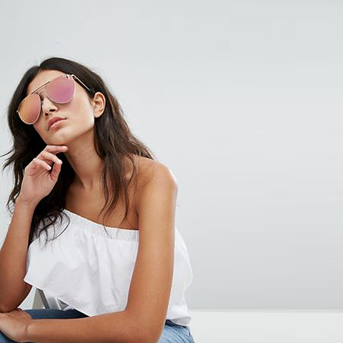 Festival favourite label Quay Australia specialize in affordable, statement making sunglasses. These rose gold frames with pink tinted lenses are no exception. Wear them for beach parties all summer long.