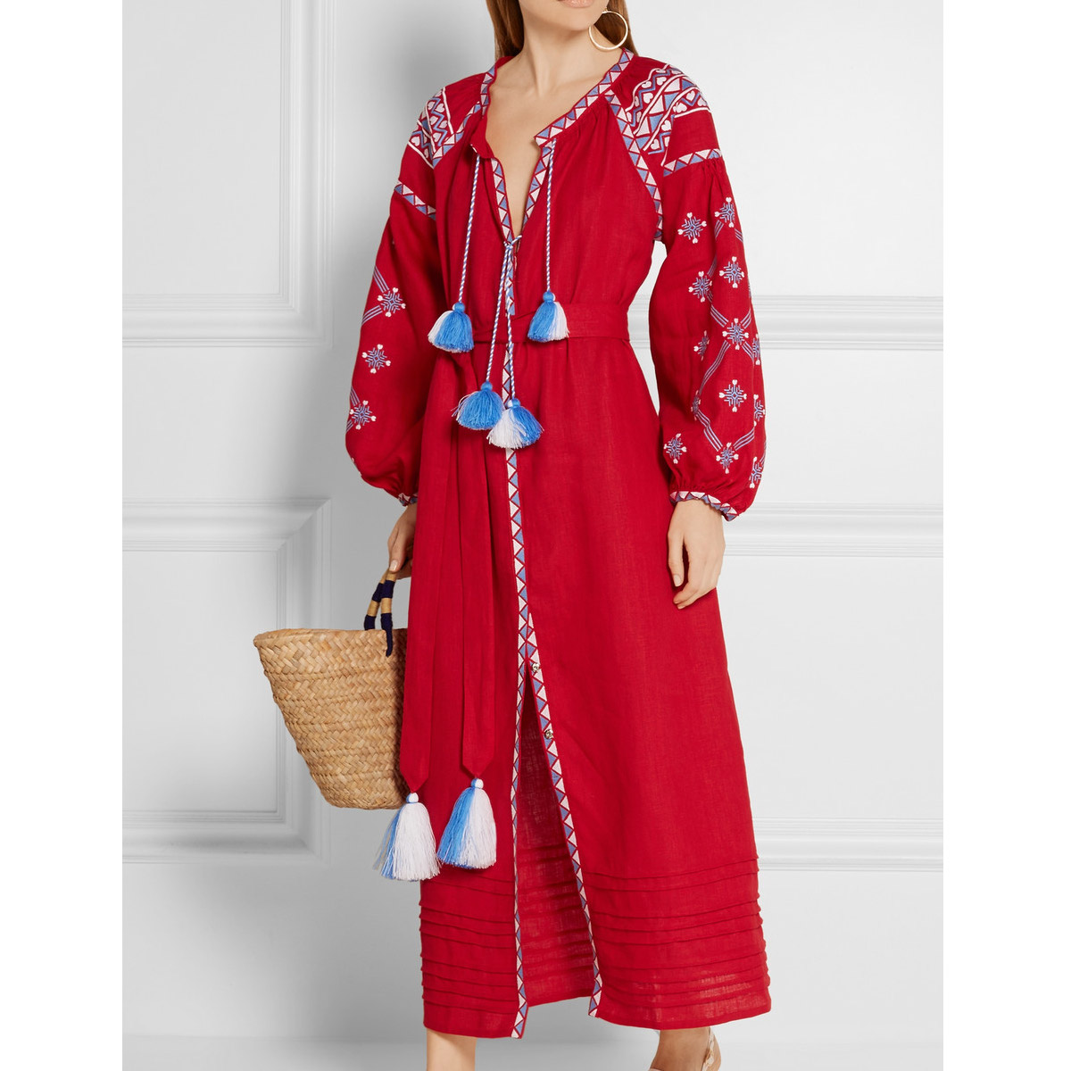 Turn heads in this bright red, embroidered linen maxi dress. Hand woven with over 3000 threads, it's a beautiful piece to really treasure - and would make for a fabulous, statement making summer dress.