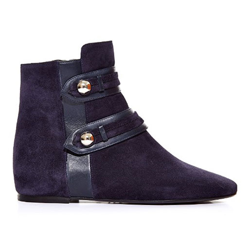 Step away from the black in these equally wearable navy suede booties from Isabel Marant. Completely flat, and therefore comfortable, their military detailing would add a smart but subtle accent to your daytime look. Work with an all-black outfit (think skinny jeans, a smart belt and an oversized shirt) to take a leaf out of the Parisian rock chick’s winter lookbook.