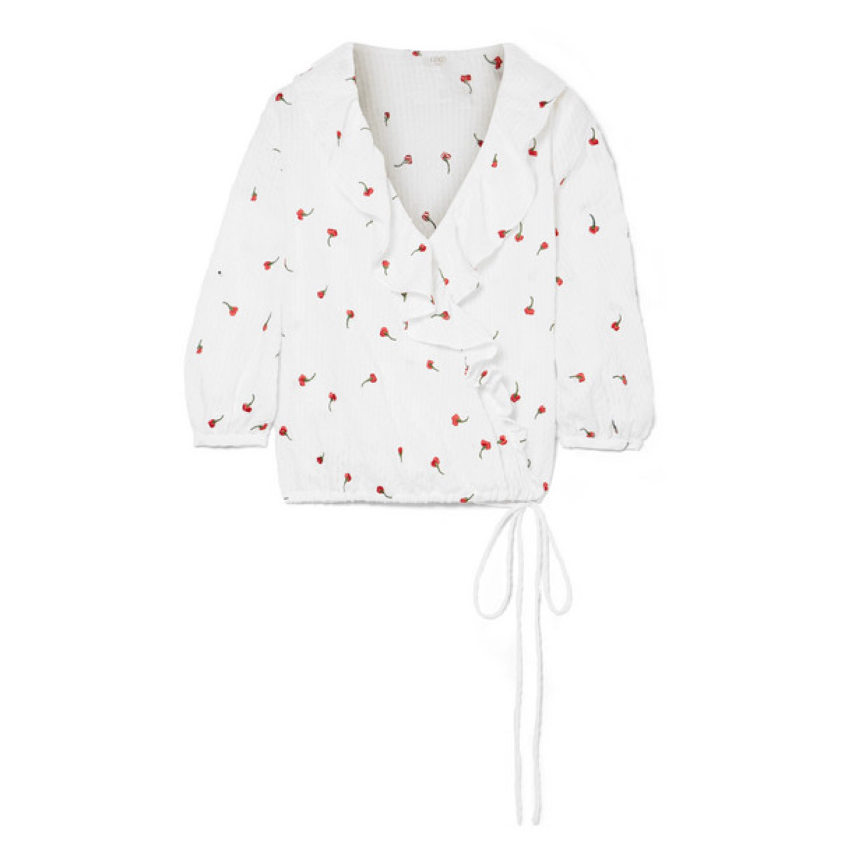 The floral print on this pretty wrap top by Rixo is subtle and summery. Wear yours with faded denim.