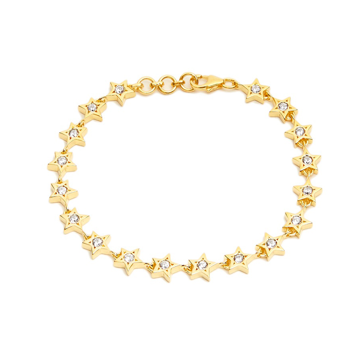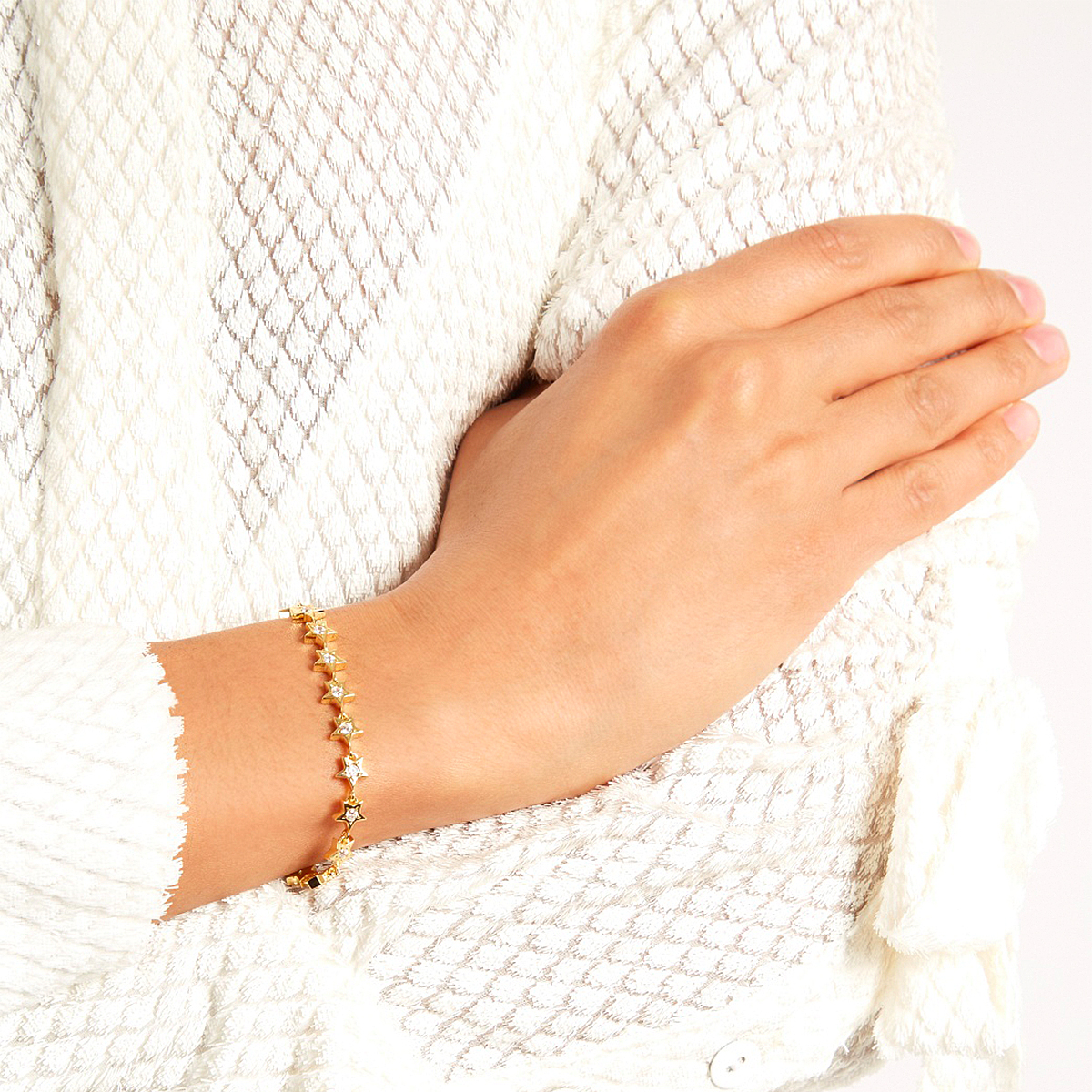 This pretty zircon and gold plate star bracelet would layer up brilliantly with other styles. We’ll wear ours mixed in with everything from colourful pom pom adorned bracelets to simple gold bangles.