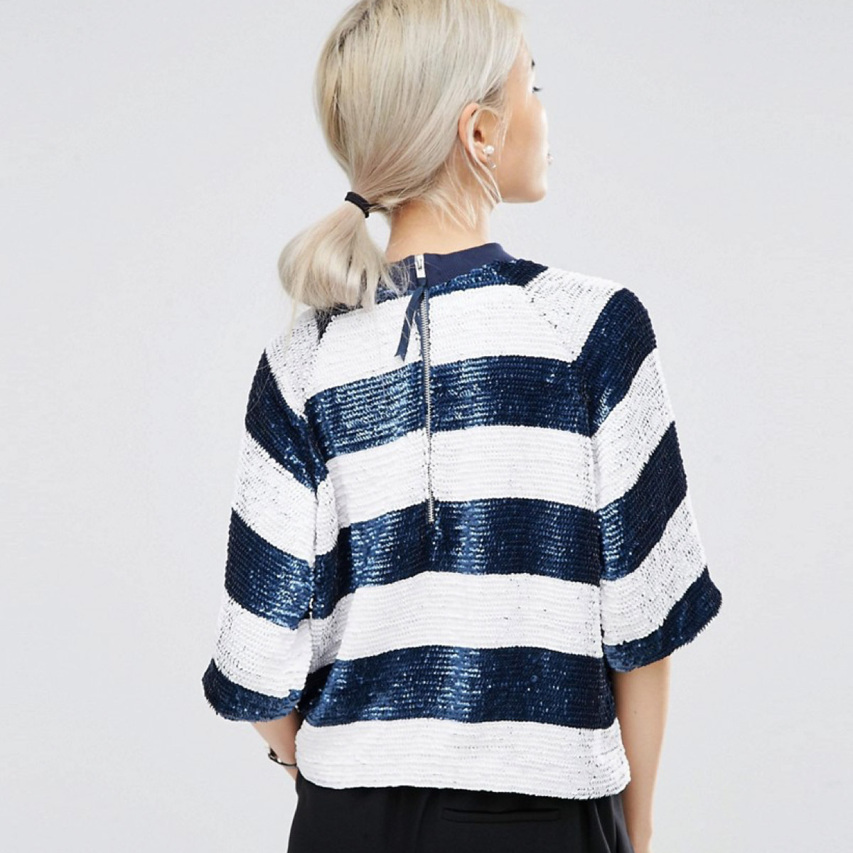 Bling up your Breton with this sequined top from ASOS. Great to wear with relaxed, cropped trousers for evening, we’d also love it by day with jeans.