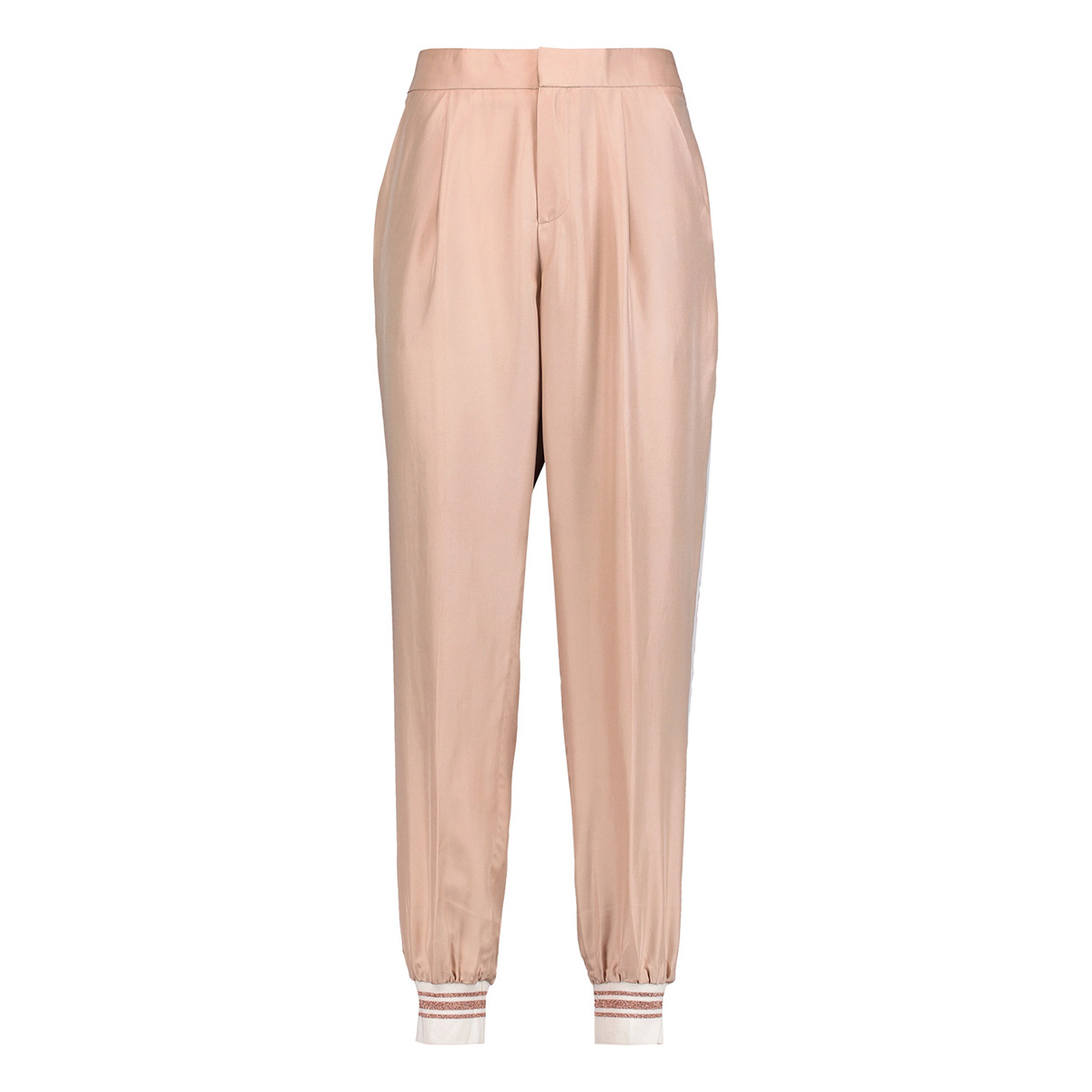 For a more summery vibe, try Raoul’s taupe silk joggers. We love their stripe down the side and would wear ours with a crisp white shirt and gold jewellery.
