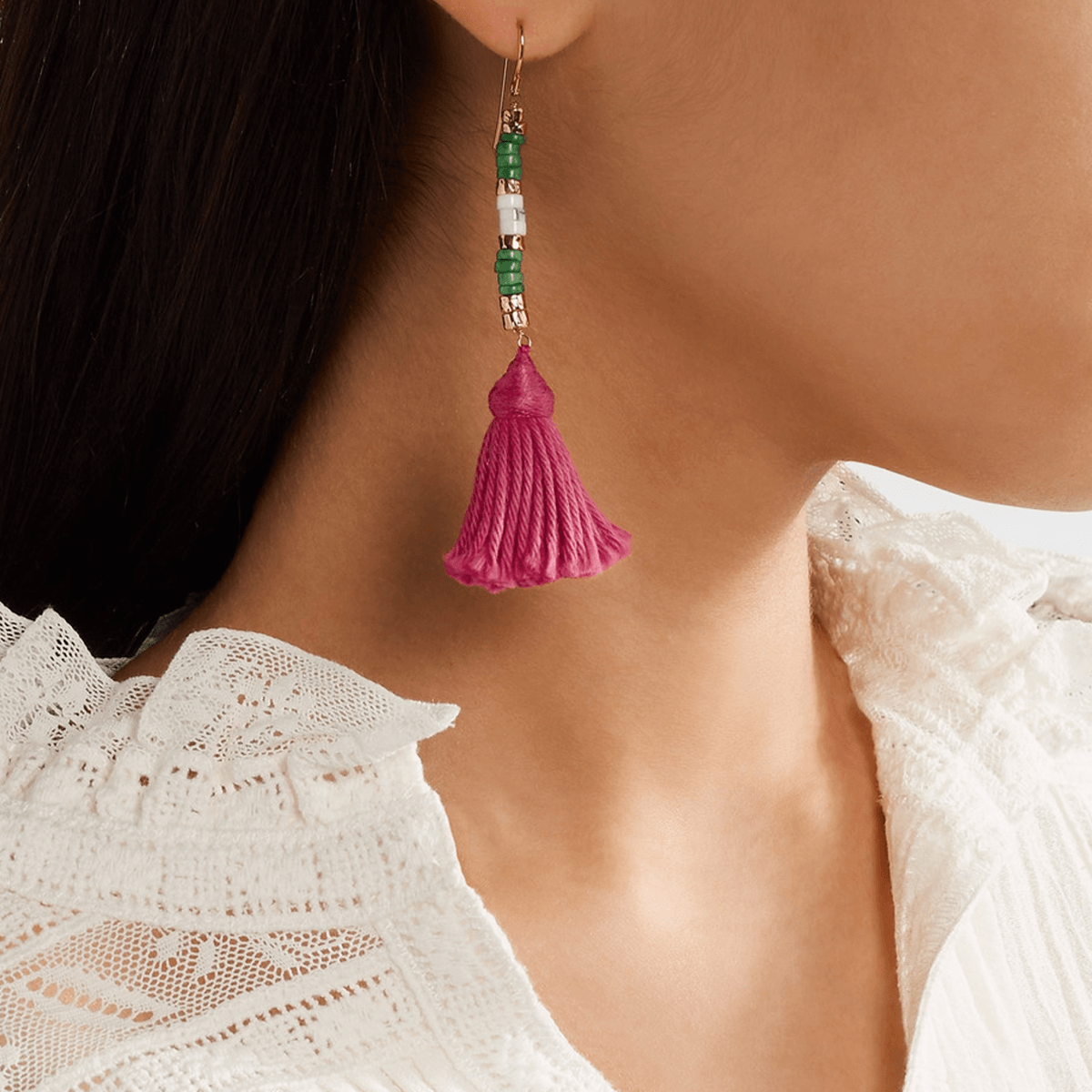 Boho and beautiful, these gold-plated, bead and silk tassel earrings are an easy yet glamorous update for any look.