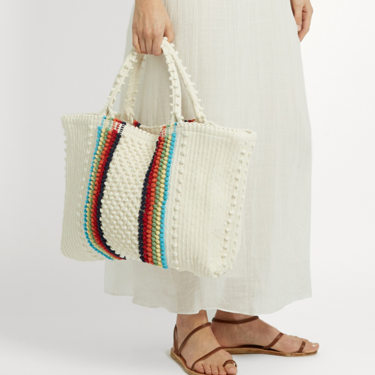 We love the bright stripes on this simple tote. Style it up with denim and white.
