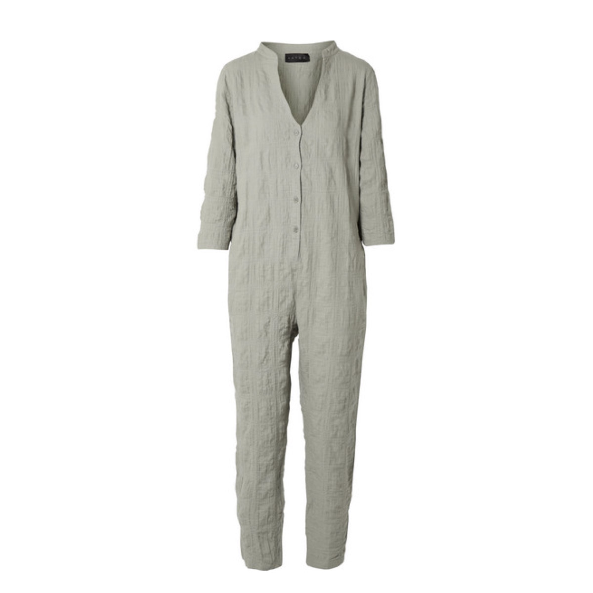 Hatch is a label known for its maternity wear that doubles easily as regular clothes. This jumpsuit is a great example. With its crinkle fabric and khaki colouring, style yours with a tan belt just like it is here to work an easy look for every day.