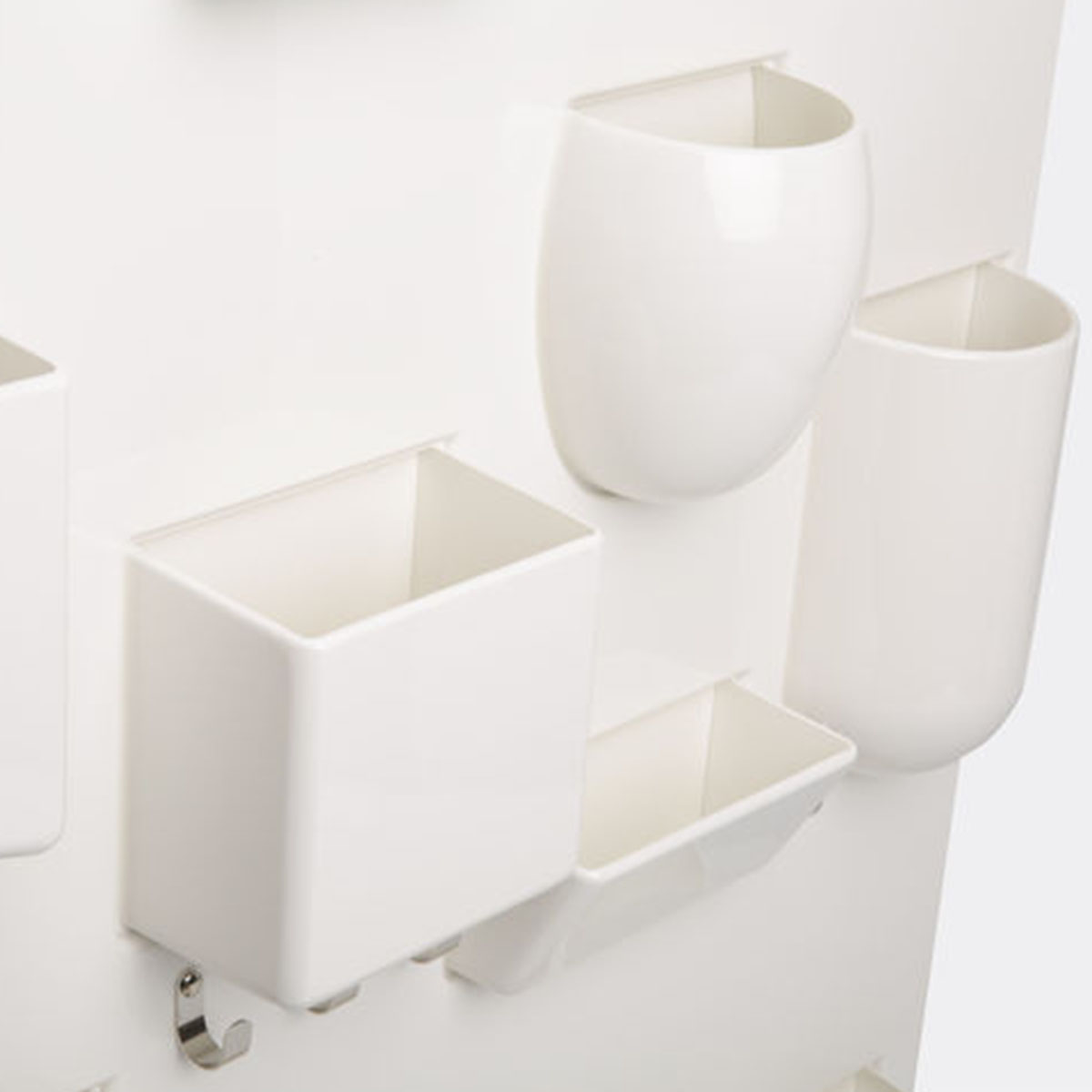 This sleek, clean form of designer Dorothee Becker’s will get tools, pens, notebooks and utensils off your work surface – whether that’s in the kitchen, the bathroom or the (home) office. Made of plastic, this product is a smart and fun way to display and store just about anything small.
