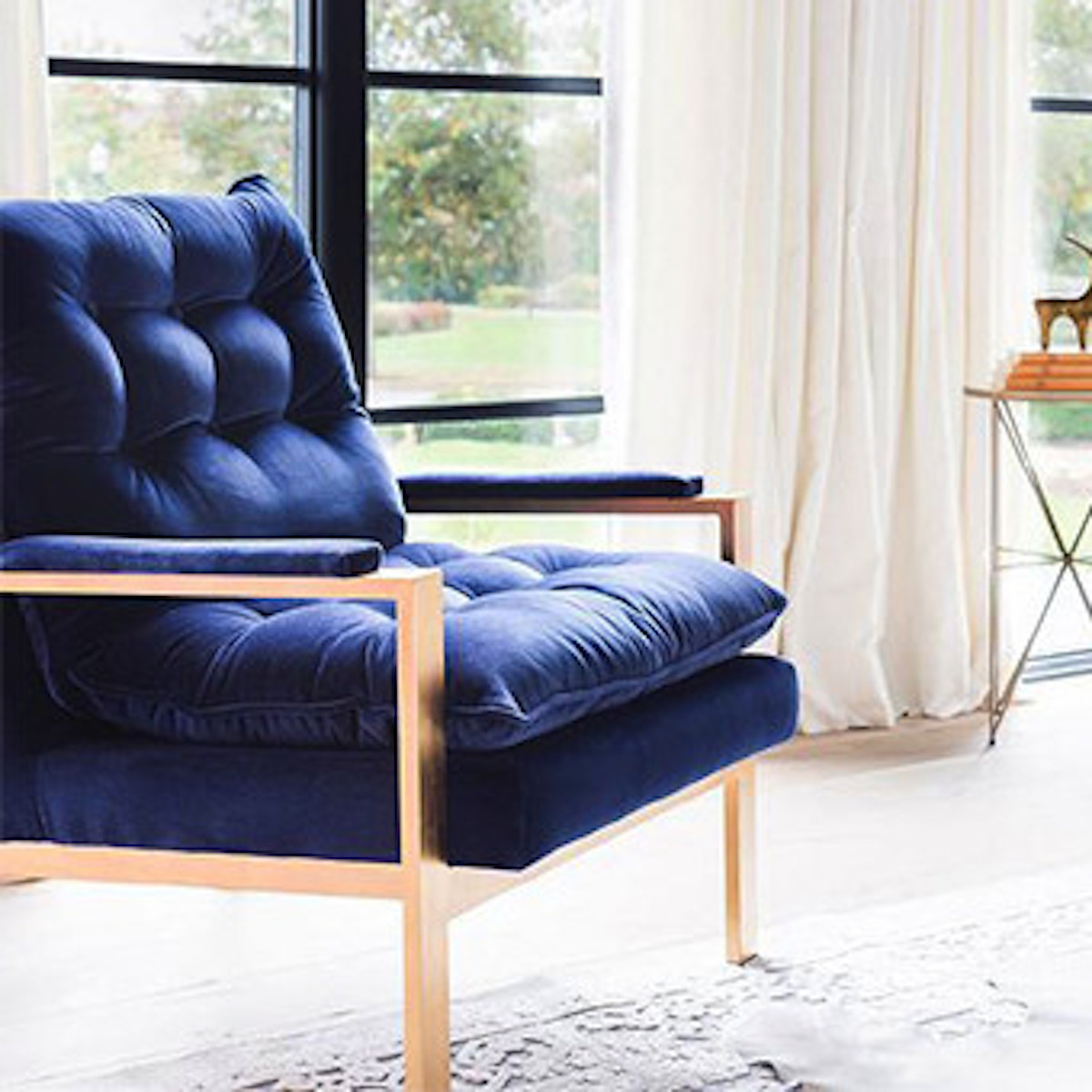 Plush velvet is in, in, in, and the Cameron chair is a particularly glamorous way to bring it home. The chair’s frame has been hand-leafed in gold or silver, and it comes with a black or navy velvet seat. We think this would look fab teamed with a mid-century modern-style table or console in walnut.