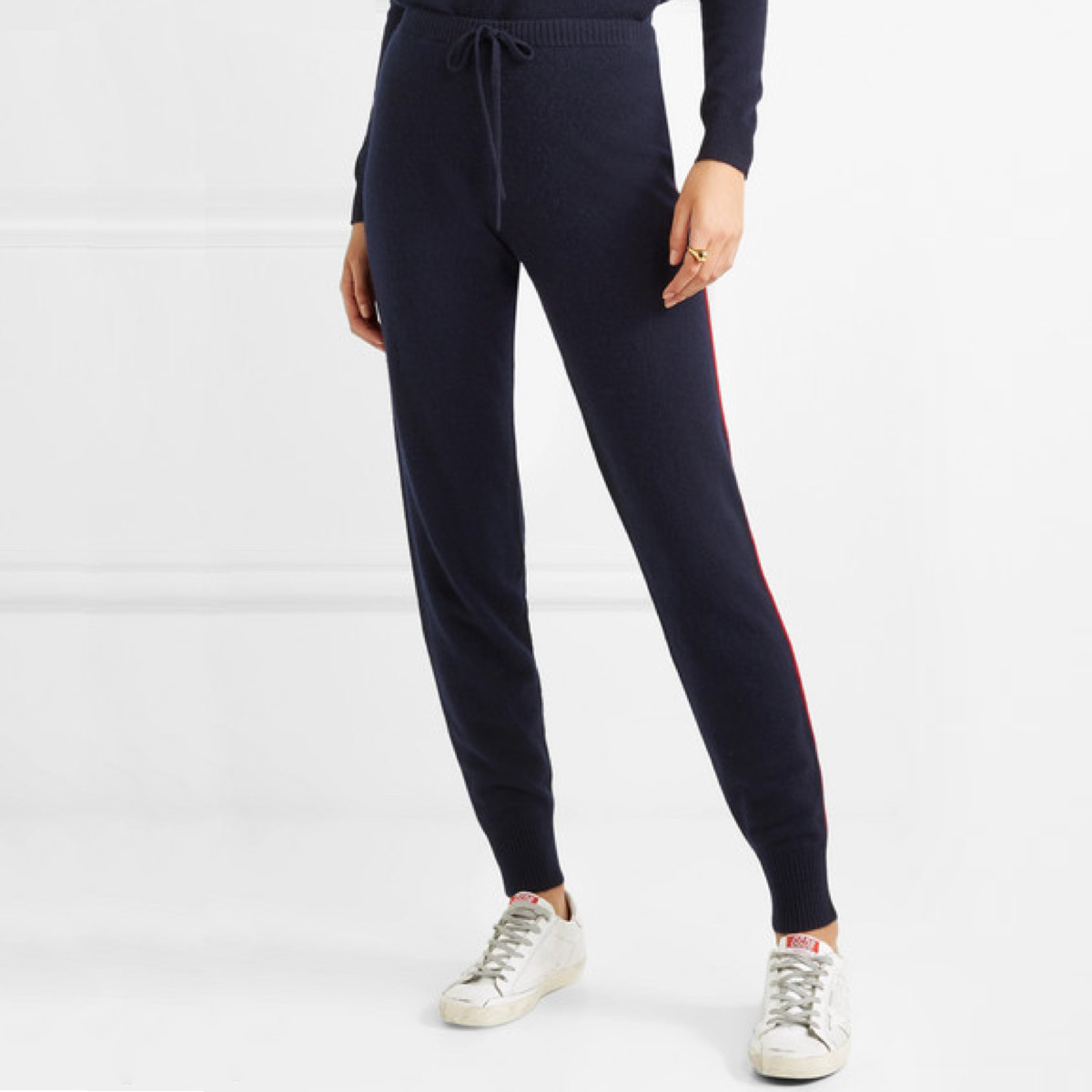 For the loungey take on the look, go for Madeleine Thompson's cashmere numbers. The subtle side stripe elevates these chic navy joggers to something more dressy. And add the matching cardigan for the full look.