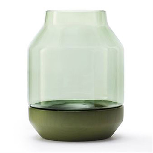Muuto’s Elevated vase brings muted beauty to the table. Available in rose, green or grey, the mouth-blown glass vase sits atop an ash-wood base. The striking piece was designed by Thomas Bentzen.