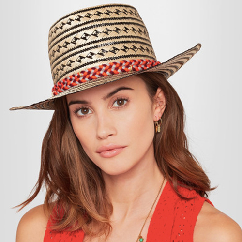 This printed, pom pom adorned hat is just the sort of style that put Yosuzi on the map. Wear it with white cotton dresses and kaftans for a fabulous look.