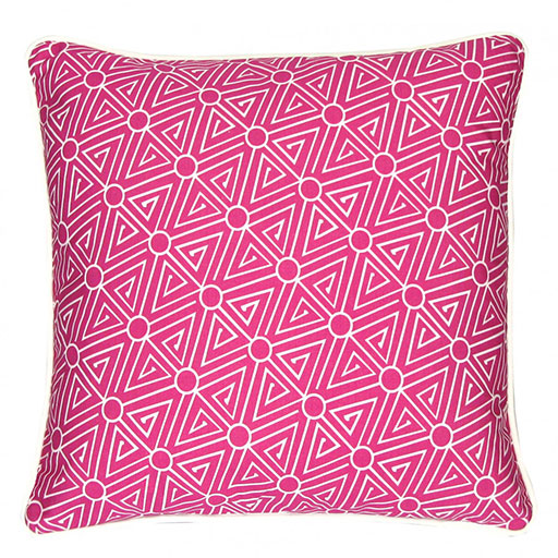 Inspired by the ancient Chinese art form for which it is named, this organic-cotton cushion features pretty fuchsia peonies against a peacock-blue background. Turn it over, and a traditional Chinese pattern gets an update, also in fuchsia. Insert included.