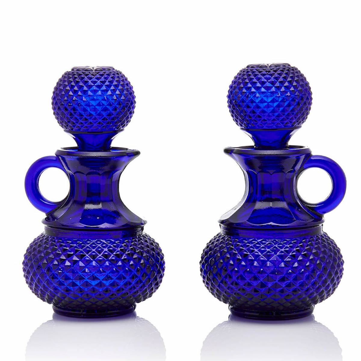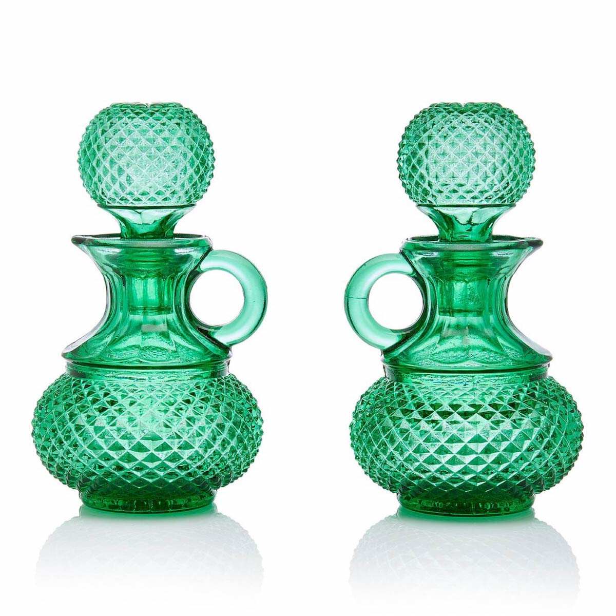 This glass oil and vinegar set has been handmade, and it comes in various vibrant shades.