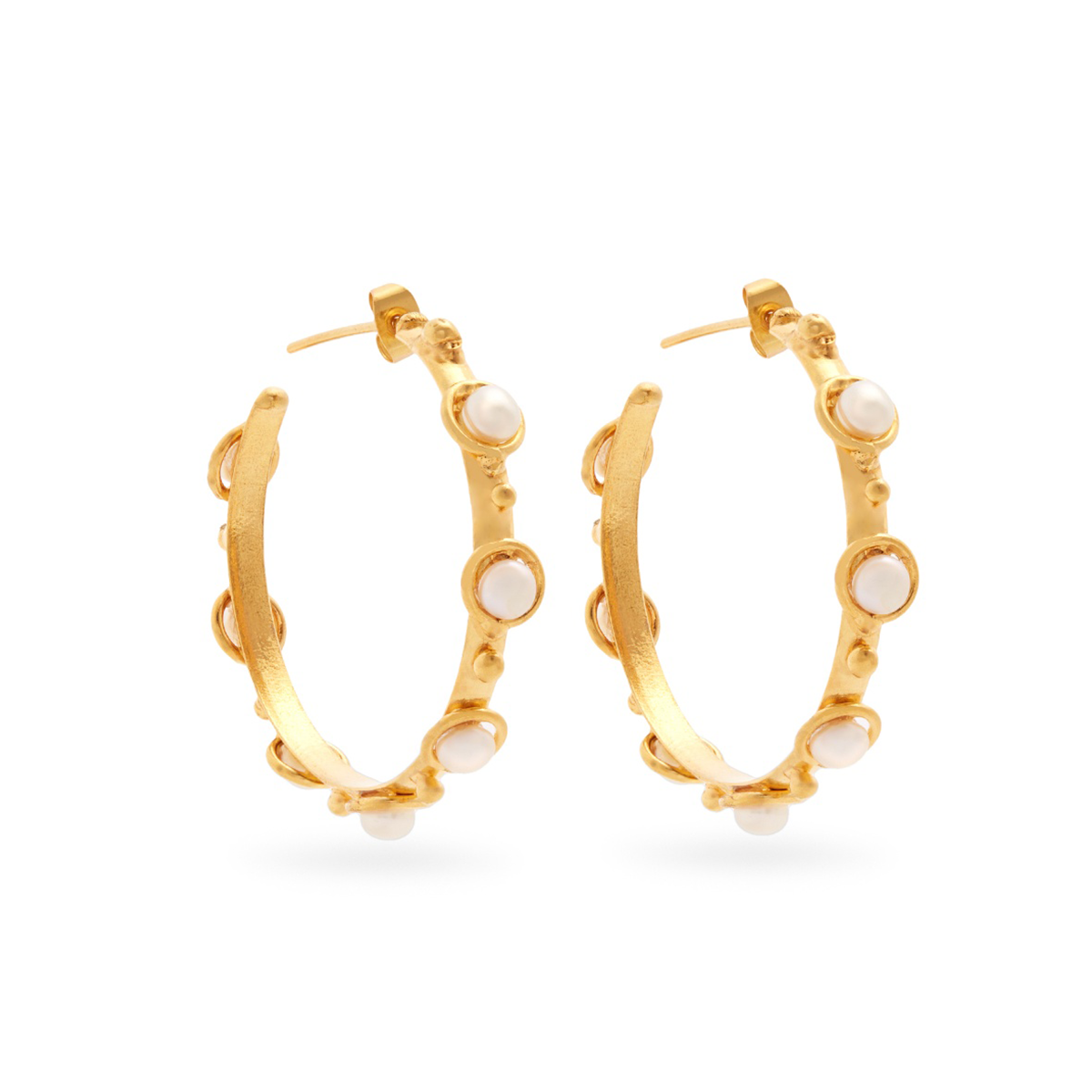 Gold-plated Hoops Sylvia Toledano HK$840.00 These beautiful hoops come with either turquoise or pearl accents and they make a perfect statement. Great for the girl who likes a bit of boho in her look. Share: Tags: Gift, Present,