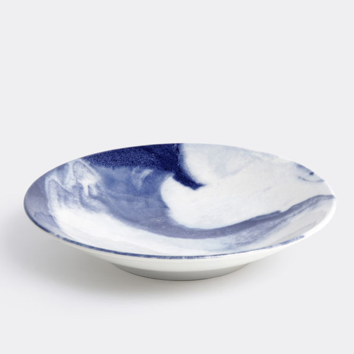 Designer Faye Toogood applies her distinctive style to the Indigo Storm collection of tableware. We love her earthenware serving bowl from the blue-and-white range.