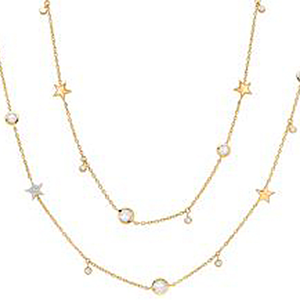 This long chain necklace has pavé and moonstone charms and can be worn multiple ways. A great, romantic piece for summer.