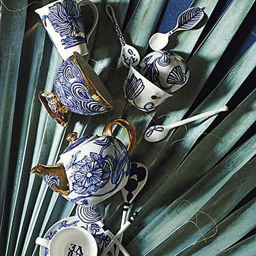 South African artist Ruan Hoffmann created his Jardin des Plantes bowls exclusively for Anthropologie, applying gold-blue-and-white motifs to stoneware. Fans of Hoffmann’s designs will find many more of his creations on the site.