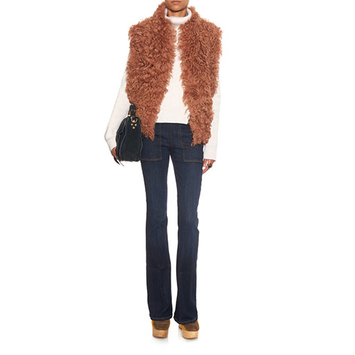 For a relaxed, weekend friendly look, team your cape with some flared jeans. This pair by Frame Denim is well structured for a flattering shape. Add a simple crew neck, some ankle boots, and you’re good to go.