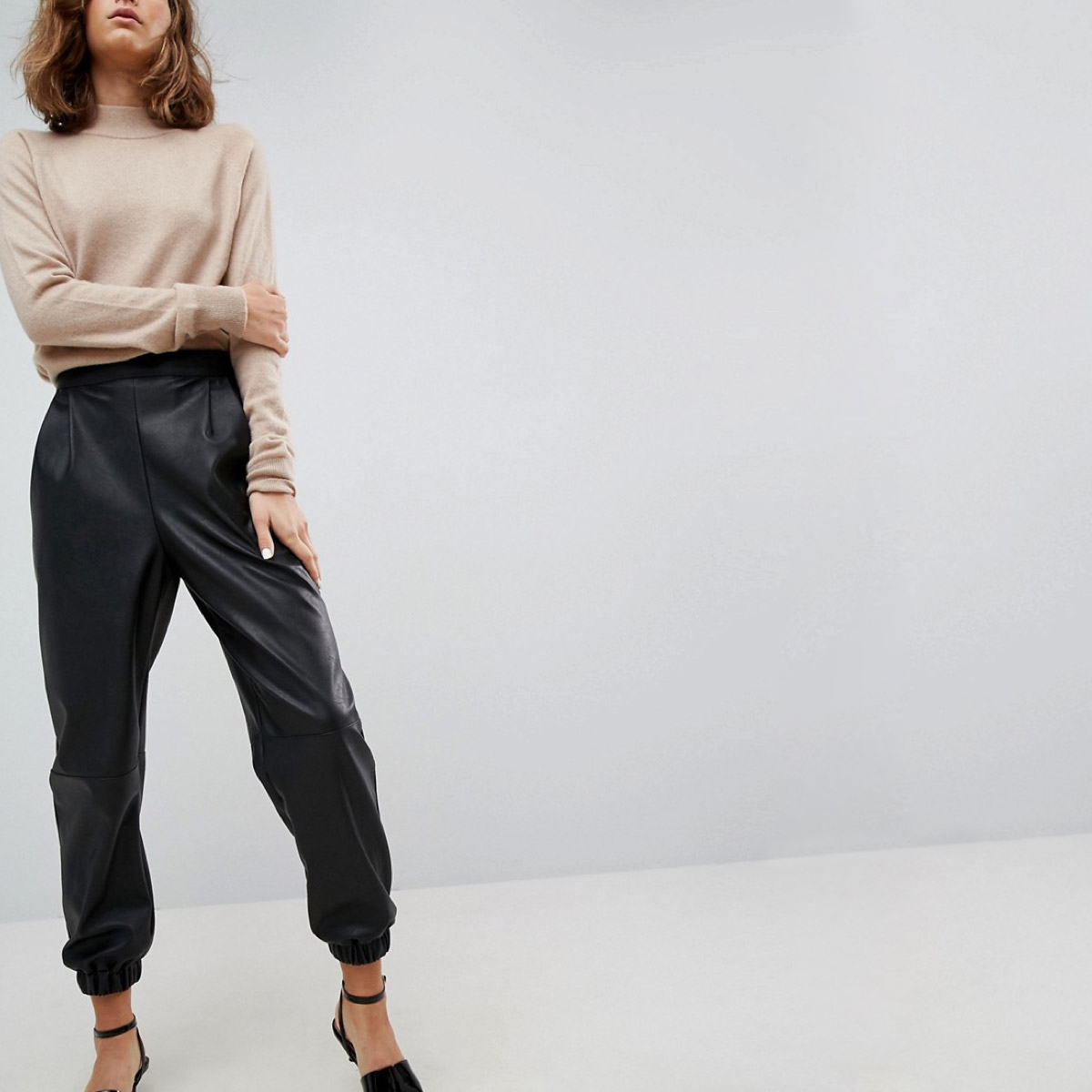 These relaxed fit joggers come in soft, faux-leather giving them a laid back yet luxurious vibe. We love this update on the classic leather trouser. Wear yours now with trainers and oversized knits.
