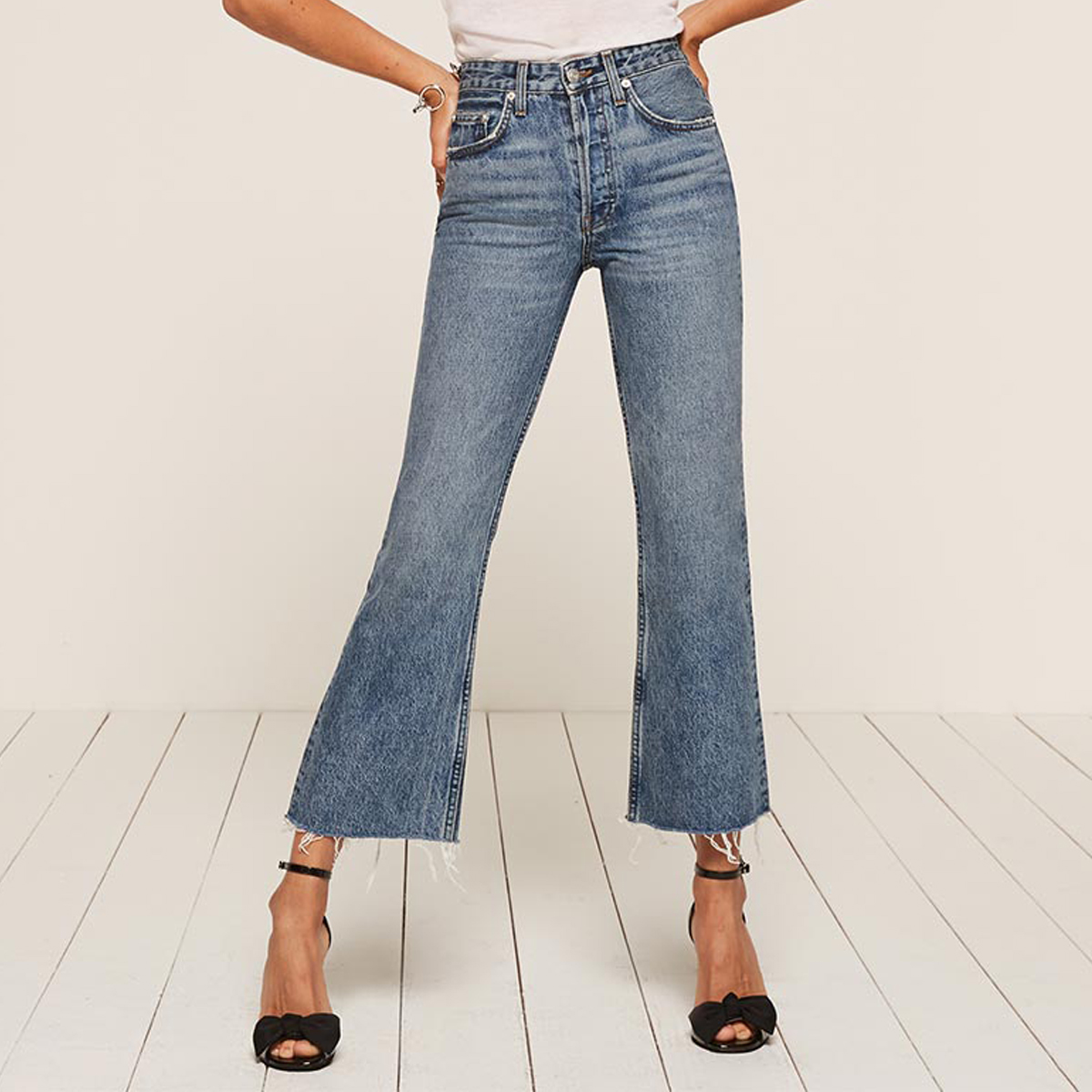 From super hip US brand The Reformation comes this pair of very on trend jeans. High waisted, slightly faded and with a nice, subtle kick, these jeans are bang on the money for SS17. Be warned – they don’t come with any stretch, so they may be a little less forgiving than other styles.