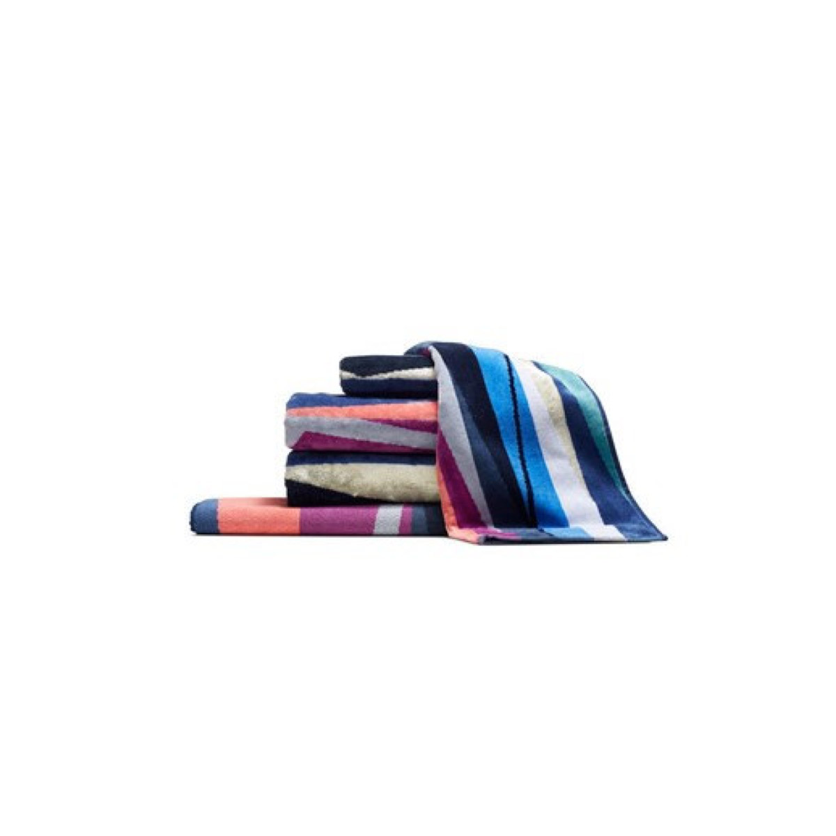 Peacock feathers inspired the colours of this brilliant bath towel. Featuring velour terry on one side and terry toweling on the other, this towel is a lush addition to any bathroom.