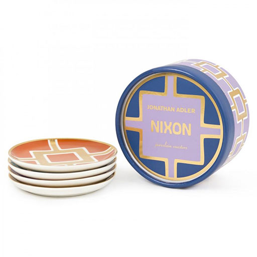 These cocktail coasters from the king of kitsch, Jonathan Adler, will bring a pretty splash of colour to your barware. The porcelain set comprises four pieces in contrasting colours, each adorned with Adler’s signature Neo-Classical motif.