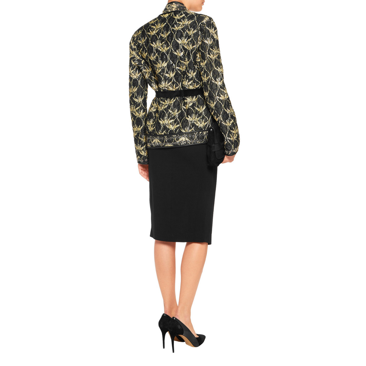 Isabel Marant's army green printed silk jacket is a fabulous blend of the casual and the chic. With its leather tie waist and cool colours, the Oma is versatile, elegant and unusual.