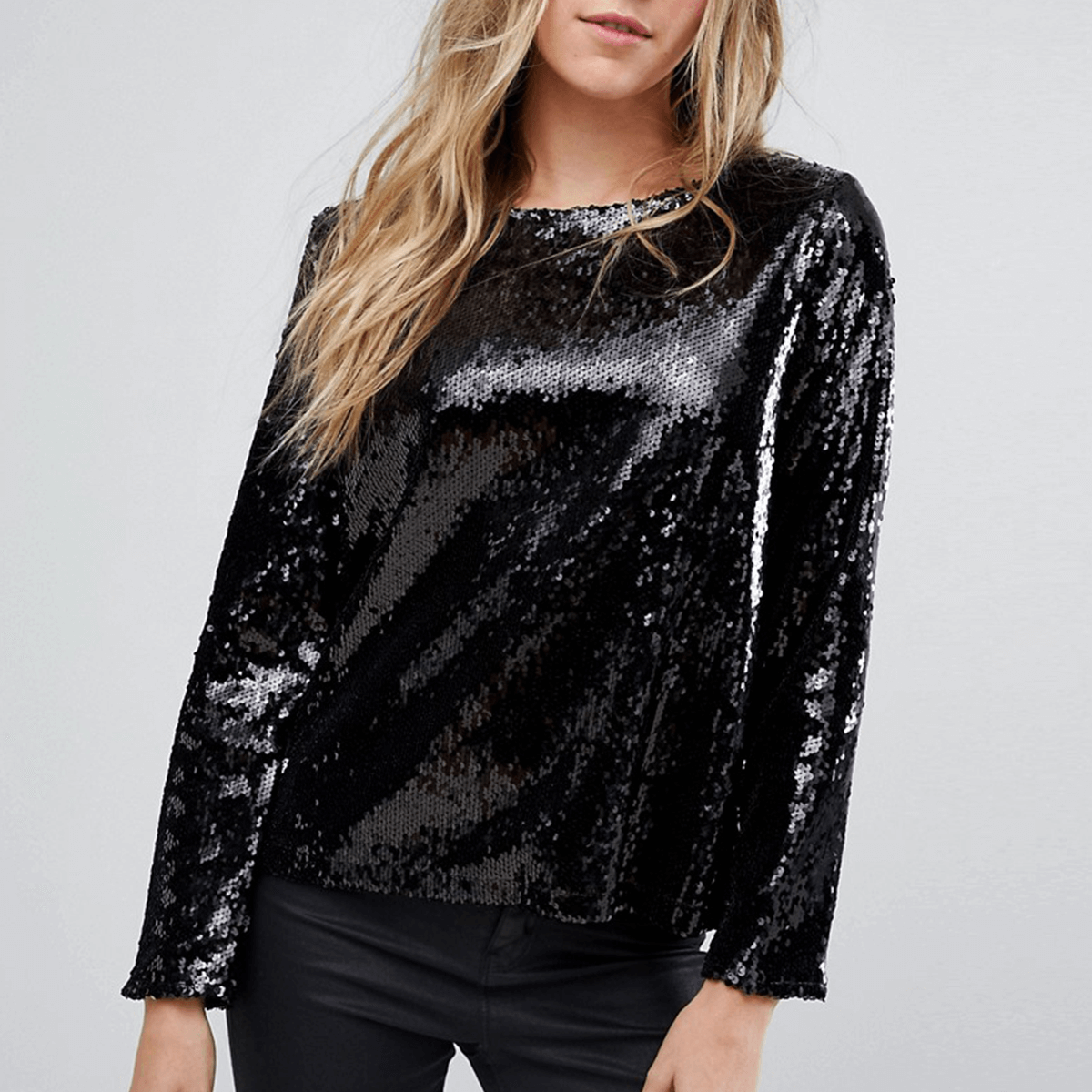 Offering an easy, relaxed way to work sequins into your look, this blouse would work brilliantly with jeans or sleek, cigarette-style black trousers.
