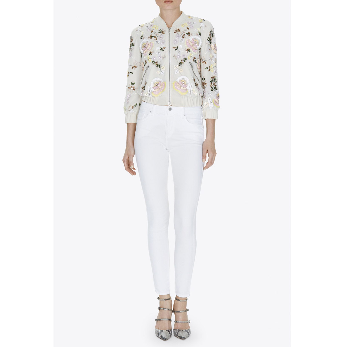 This sequin-embellished bomber jacket is a total trophy item. Imagine wearing yours with faded jeans and a silk blouse for a fabulous yet casual evening look. Or let the jacket do all the talking and wear it over a simple LBD.
