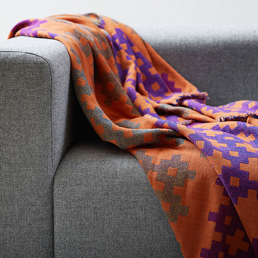 Danish brand Hay’s 100-percent wool throw is soft and cosy thanks to the double-weaving technique used to create it. The throw features a bold, geometric design, stitching detail on two sides, and it's available in several colourways, based on purple, orange, grey or yellow.
