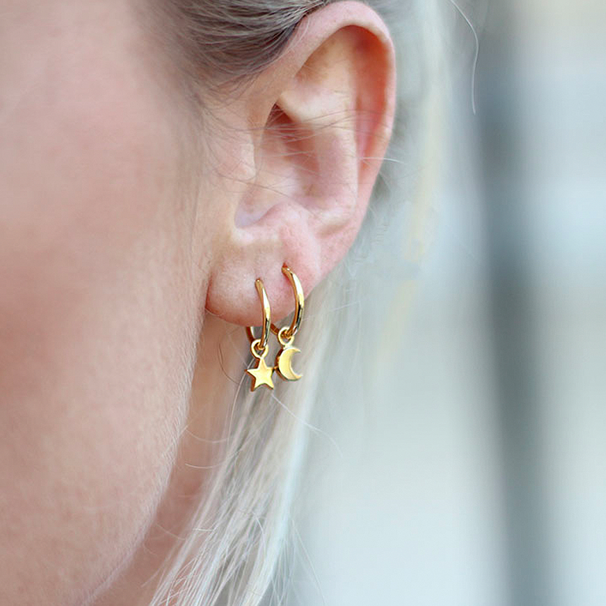 Work this summer’s penchant for mix and match earrings with this set of discreet charm hoops.