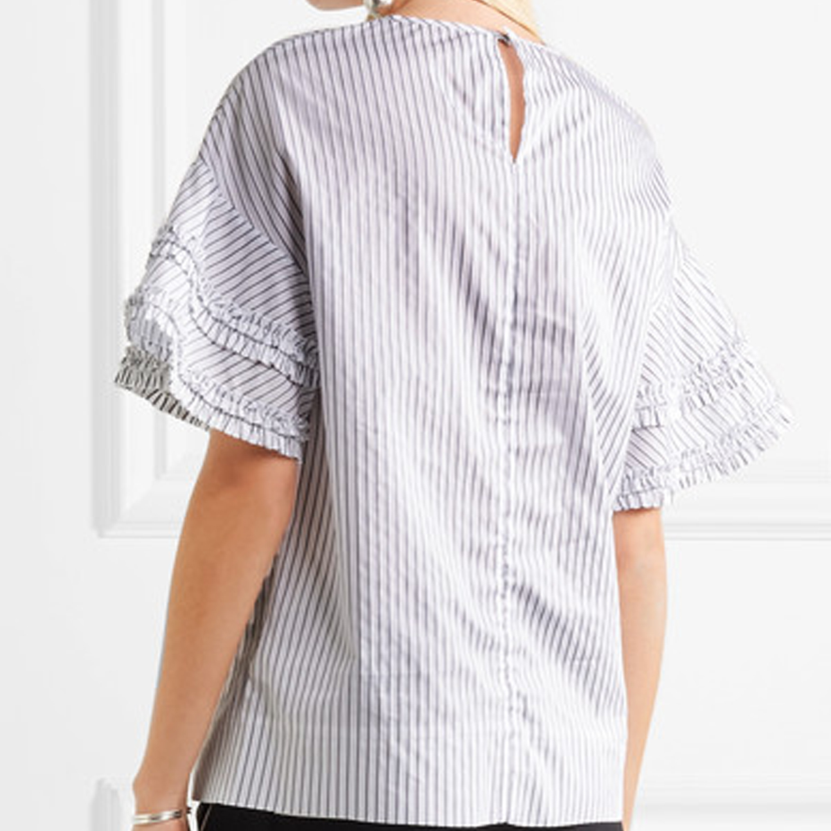 This sophisticated cotton blouse ticks all the boxes. The top's work friendly stripes plus ladylike sleeves make it a great choice to pep up your office look.