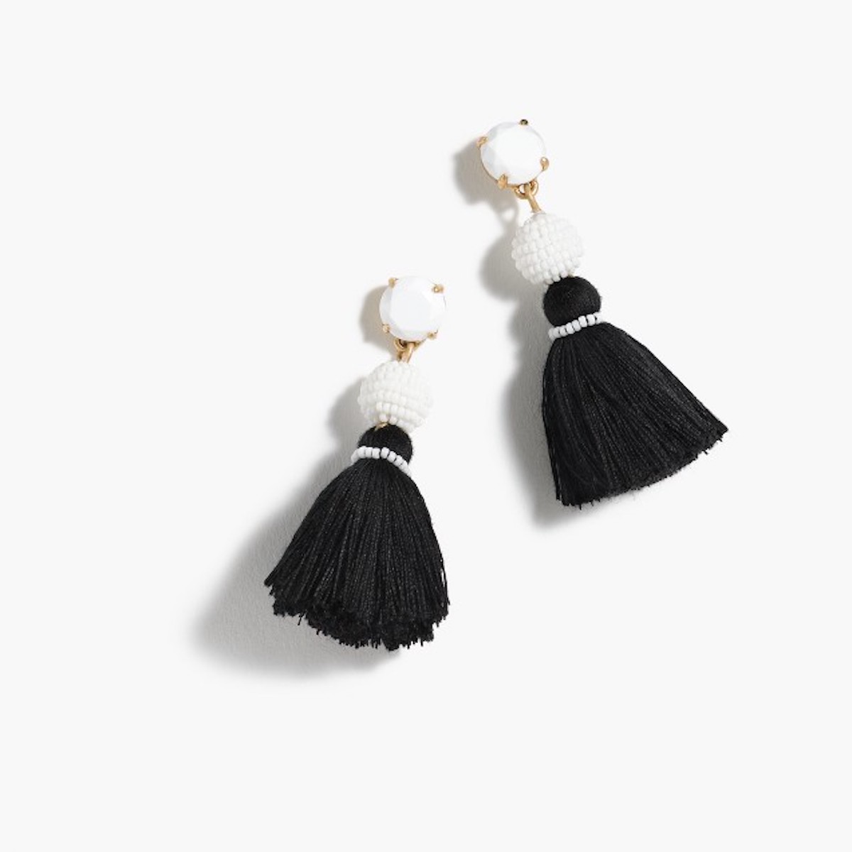 These glam tassel ball earrings are available in several easy-to-match colourways, including red, black-and-white, and gold.