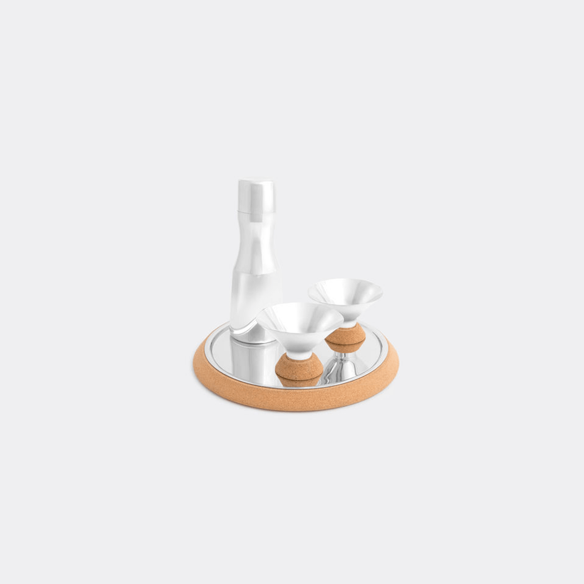 Made of pewter and cork, this is the ultimate cocktail kit for the jet-set traveller or the avid sailor. London designer Miranda Watkins created this collection, which includes a cocktail shaker, two Martini glasses and a tray for *Wallpaper Handmade, and the result is fun, stylish and lightweight.
