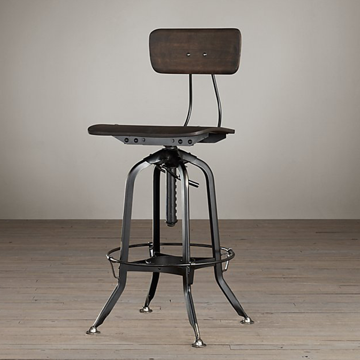 Industrial chic has never felt more inviting than on these vintage-inspired stools, where warmth from the wood seating and flexibility from the adjustable backrests let your guests unwind in stylish comfort.