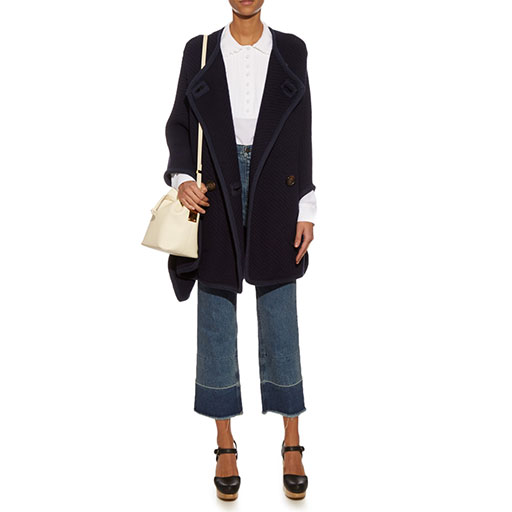 With its military detailing, smart navy blue colouring and structured yet relaxed shape, this cape is a great desk to dressing down option. We’d wear ours with wide, sailor-style trousers or jeans and a simple crew necked sweater, working plenty of French chic along the way. We love the pockets, too – stylish and super handy.