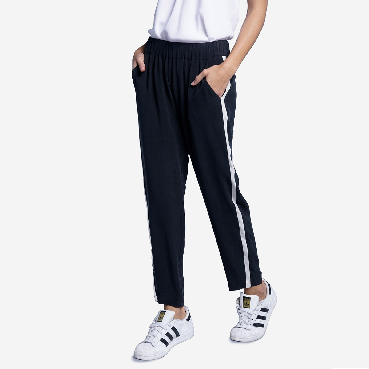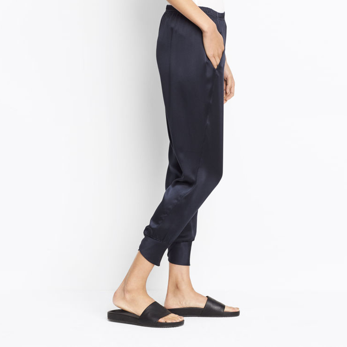 The sheen on this pair of navy, silk trackpants elevates them to rather a smart place. Wear yours with summer sneakers for an easy look.