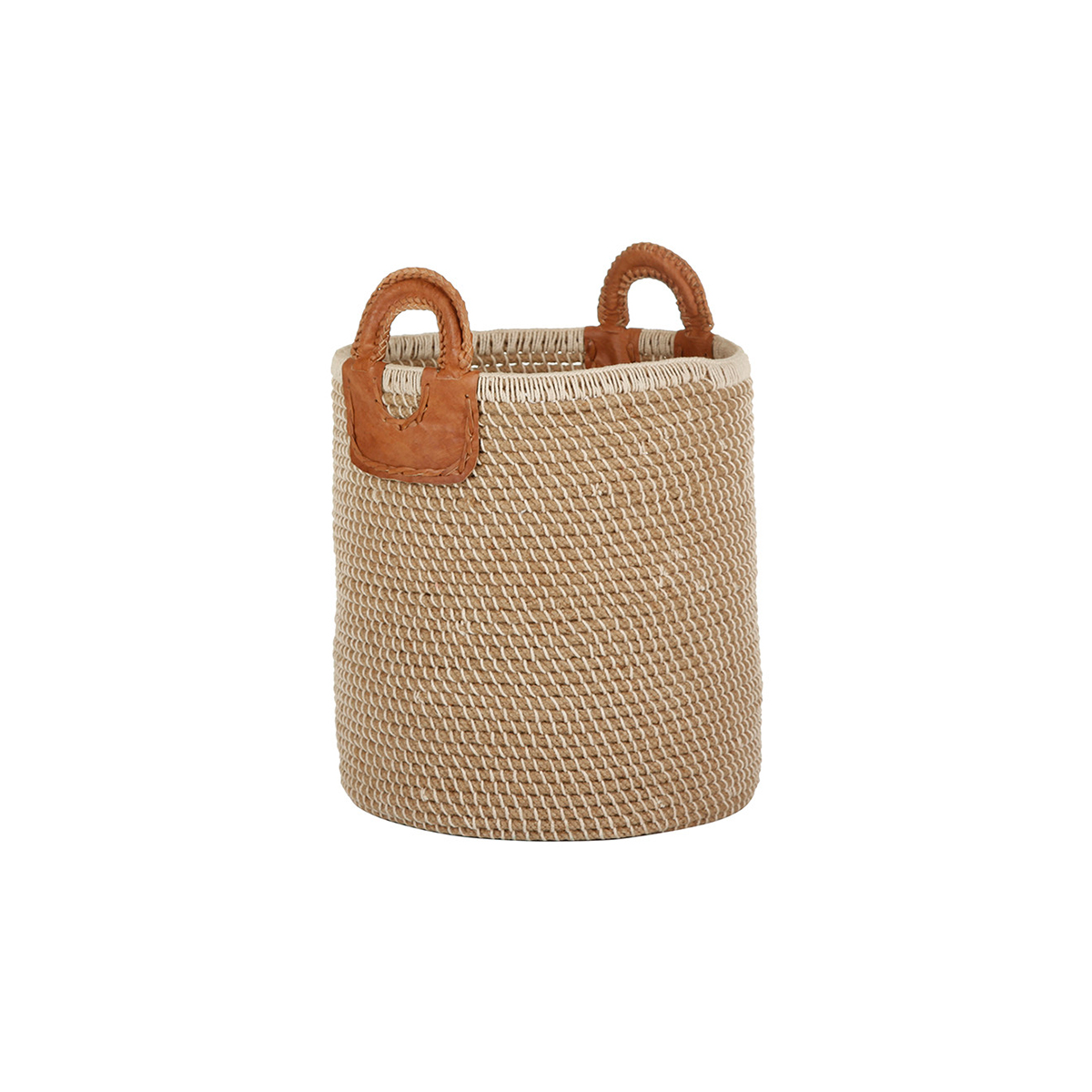 Fill this hand-woven basket with shoes, toys or bits and bobs. The Indian-made jute, cotton and leather basket comes in a pretty, muted blue, or in natural, and is finished with leather handles.